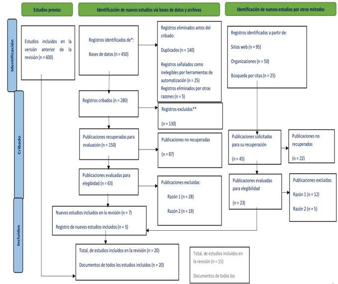 Fuente: Declaración PRISMA (2013) con las modificaciones de la versión PRISMA (2020). (Page et al., 2021)