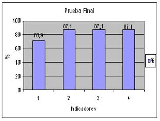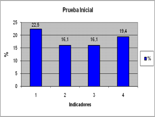Un análisis entre la prueba inicial y la de salida teniendo en cuenta los indicadores señalados se observa un incremento en comparación con el estado inicial del fenómeno (ver gráfico 1).