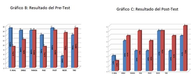 Análisis comparativo entre los resultados del pre-test (Gráfico B) y el post-test (Gráfico C)