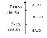 El desempeño de los deportistas estudiados se caracterizó al normar los resultados obtenidos por cada uno, estableciendo los niveles Alto, Medio y Bajo en cada indicador y en la totalidad del movimiento. Para ello se calcularon los valores medios y la desviación estándar de los resultados de la evaluación de los expertos, según las expresiones mostradas, obteniéndose los valores para cada nivel.