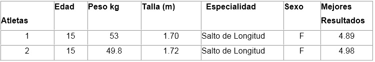 en la comparación de los resultados de las 2 atletas objeto de estudio