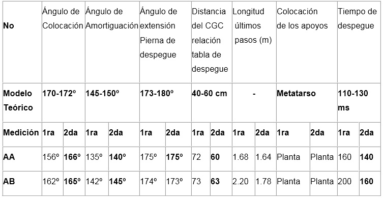 principales deficiencia que presentan las atletas en el momento de despegue.