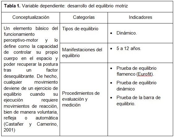 al desarrollo del equilibrio dinámico; para lo cual se utilizó