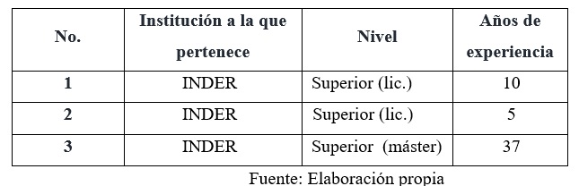 de expertos (Metodología CTE). Universidad de Ciencias de la Cultura Física