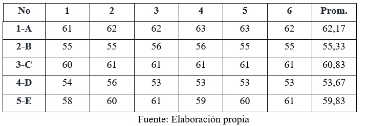 En la tabla 3 que se muestra a continuación se presenta el valor medio de la