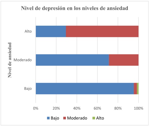 entre moderado y alto; mientras que el nivel de ansiedad, entre moderado y alto