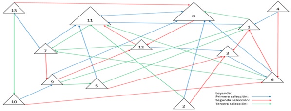 Una vez analizado el perfil de autovaloración del líder se aplicó el test sociométrico para el conocimiento de la posición que ocupa la capitana y las jugadoras escogidas dentro del equipo, así como las relaciones que se establecen entre ellas. Como resultado más significativo se destaca que en las relaciones de intercambio en la actividad formal la capitana es reconocida como líder, solo por la diferencia de una selección con la eminencia gris. Ver figura 3.