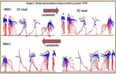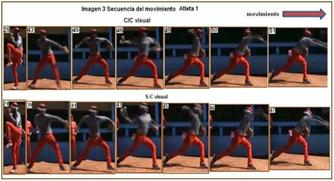 Cuando se analiza la secuencia del movimiento para ambos atletas en las pruebas, se observa que en la fase de descenso de la pierna de péndulo e impulso de la mano que lanza es donde se observan mayores dificultades. (Ver imagen 4)
