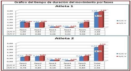 En el atleta 1 se observan diferencias significativas de duración de ejecución del movimiento en las diferentes fases en ambas pruebas.