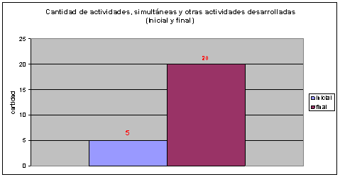 Gráfico 3. Comparación inicial y final en cuanto a actividades, simultáneas y otras actividades desarrolladas.
