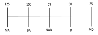 y el valor máximo es de 125. Los resultados se muestran en la tabla Likert