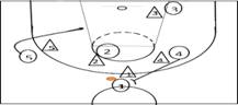 Objetivo: controlar la penetración, arrastre de las marcas, desmarque individual por parte del base, creándose un espacio para realizar un pase.