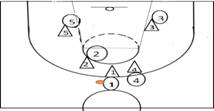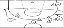 Objetivo: controlar la penetración, arrastre de las marcas, desmarque individual por parte del base, creándose un espacio para realizar un pase.