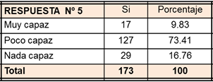 Tabla 6. Resultados de la interrogante 5