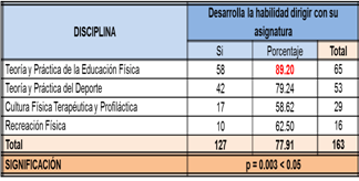 desarrollo de la habilidad dirigir en los estudiantes durante su curso por la