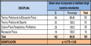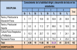 desarrollo de la habilidad dirigir en los estudiantes durante su curso por la