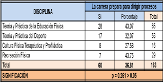 futuro desempeño como licenciado en Cultura Física. No hay diferencias