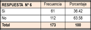 Tabla 7. Resultados de la interrogante 6