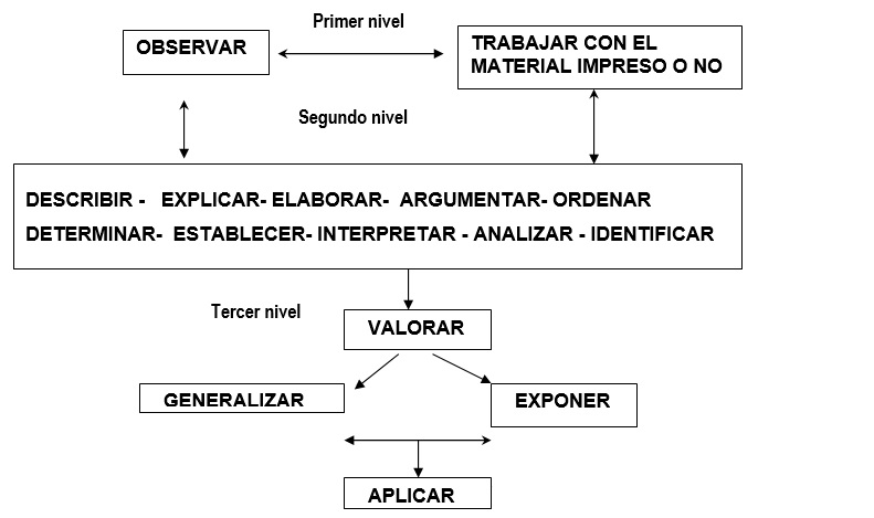Observar, Trabajar con el material impreso o no. Identificar, Describir, Explicar