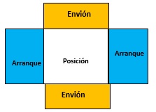 Desarrollo: los atletas se colocan desde la posición inicial parados en el cuadrante de posición
