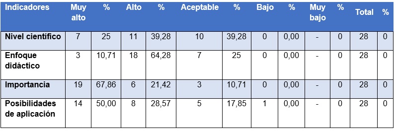 En la siguiente tabla 1 se resumen los resultados de la consulta a los especialistas.
