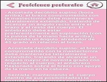 La propuesta Indicaciones básicas remite al usuario a una ventana deslizable con las recomendaciones referidas y dos botones en la parte superior para regresar. Al seleccionar la opción Posiciones posturales, los usuarios podrán visualizar la ventana deslizable con la información en cuestión. Ver figura 5.