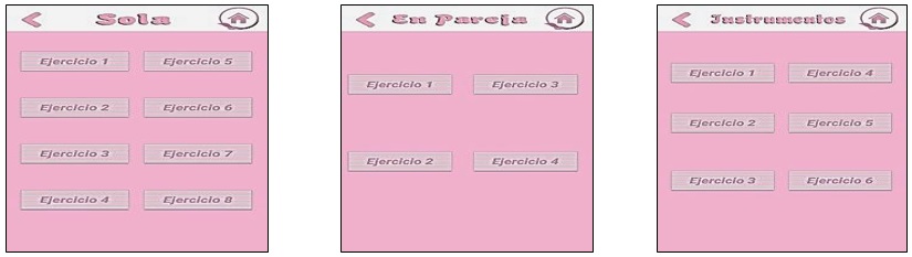 Como se muestra en la figura 1, la ventana de presentación o inicio donde se resalta el nombre de la aplicación, tiene tres accesos generales: Cuidados a seguir, Ejercicios físicos y Acerca de la aplicación.