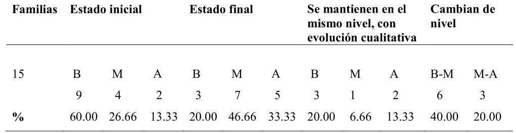 Comparación del estado inicial y final de las familias