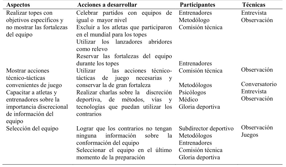 III. Realizar charlas con los atletas y entrenadores sobre la protección de las informaciones del equipo al existir probabilidad de filtración a través de relaciones interpersonales fomentadas con atletas de otras selecciones.
