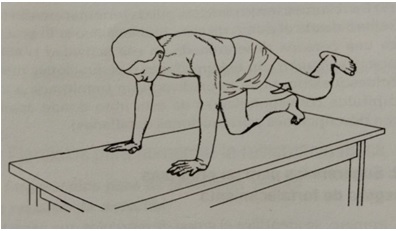 Etapa IV: Fortalecimiento muscular: se intensifica el fortalecimiento de la musculatura glútea, abdominal y oblicua, además de que se mejora la fuerza y el tono muscular paravertebral. Dosificación: 3-5 series de 15-20 repeticiones. Ver figuras 13, 14, 15 y 16.