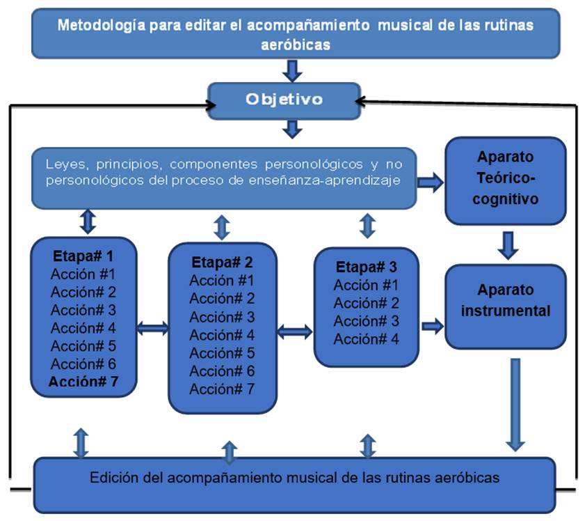 Precisamente, los autores proponen un manual metodológico utilizado en el proceso de superación de posgrado, contentivo de una metodología para editar el acompañamiento musical de las rutinas aeróbicas. El cual incluye los requerimientos mínimos que establece el nuevo Código Internacional de Puntuación para la Gimnasia Aerobia Deportiva (2016).