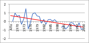 En una aproximación empírica a esta apreciación, fueron estudiados los resultados de la ejecución técnica de los relevos de 4 x 100 m que han representado a Cuba desde los Juegos de México’ 68, a partir de las aportaciones hechas por el técnico polaco Edmund Potzchovosky (1967), citado por Betancourt y Fuentes (2005), en relación a la determinación del Tiempo de Efectividad como indicador de efectividad comparativa de la técnica, y que arrojó los resultados que se exponen en las figuras 1 y 2: