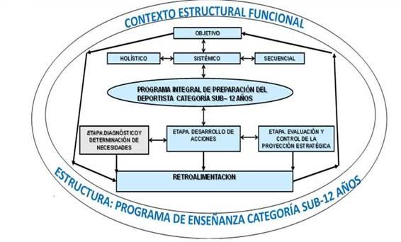 La presente estrategia para la dirección de equipos, tiene un carácter holístico-sistémico-secuencial que considera como núcleo el PIPDB de la categoría sub-12 años en el entrenamiento y la competencia, teniendo en cuenta la interrelación de los siguientes aspectos (ver Figura 1):